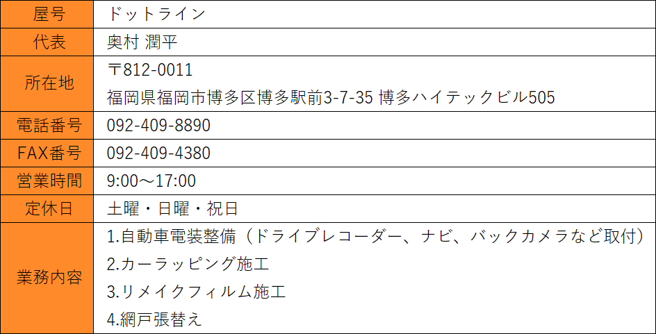屋号のドットラインですが、一つ一つバラバラで意味の無い様に思える経験や人との縁(ドット)が、必ずどこかで繋がり、点の集合が太い線(ライン)になる事を願いこの屋号に致しました。